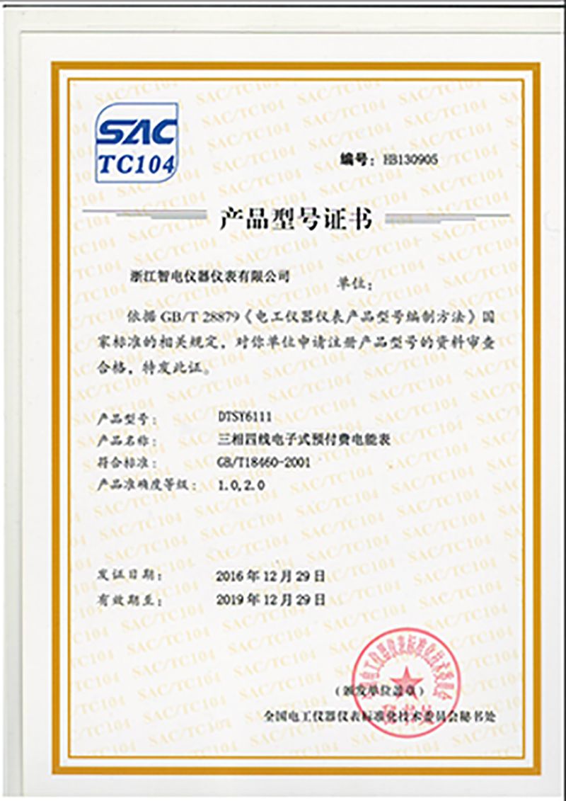 DTSY6111產(chǎn)品型號(hào)證書
