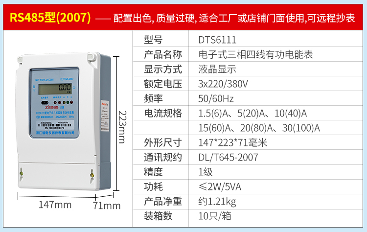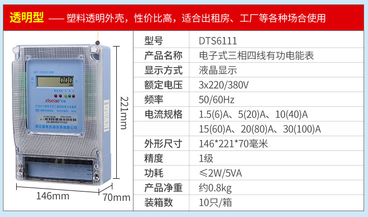 DTS6111型三相四線和DSS6111型三相三線兩種型號三相電子式有功電能表,內部運用了集成電路在經過SMT工藝生產制作而成。結構設計合理,制作工藝先進,跟傳統的電能計量表對比,三相電子式有功電能表的測量準確度高、性能可靠、節能。