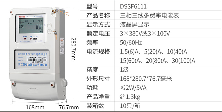 DTSF6111三相四線  DSSF6111三相三線電子式多費率電能表(尖峰平谷電表)是我公司開發的,具有分時計量用戶所用電能功能,并可實現多種用電費率計費和集中抄表功能的電能計量電能表,該表技術性能符合GB/T17215.321-2008《1級和2級電子式交流有功電度表》和GB/T15284-2002《復費率(分時)電度表》國家標準的要求,適用于計量額定頻率為50Hz或60Hz三相交流有功電能。