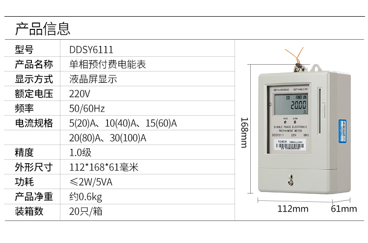 訂購產品: DDSY6111單相預付費電表 外貿出口型 英文版