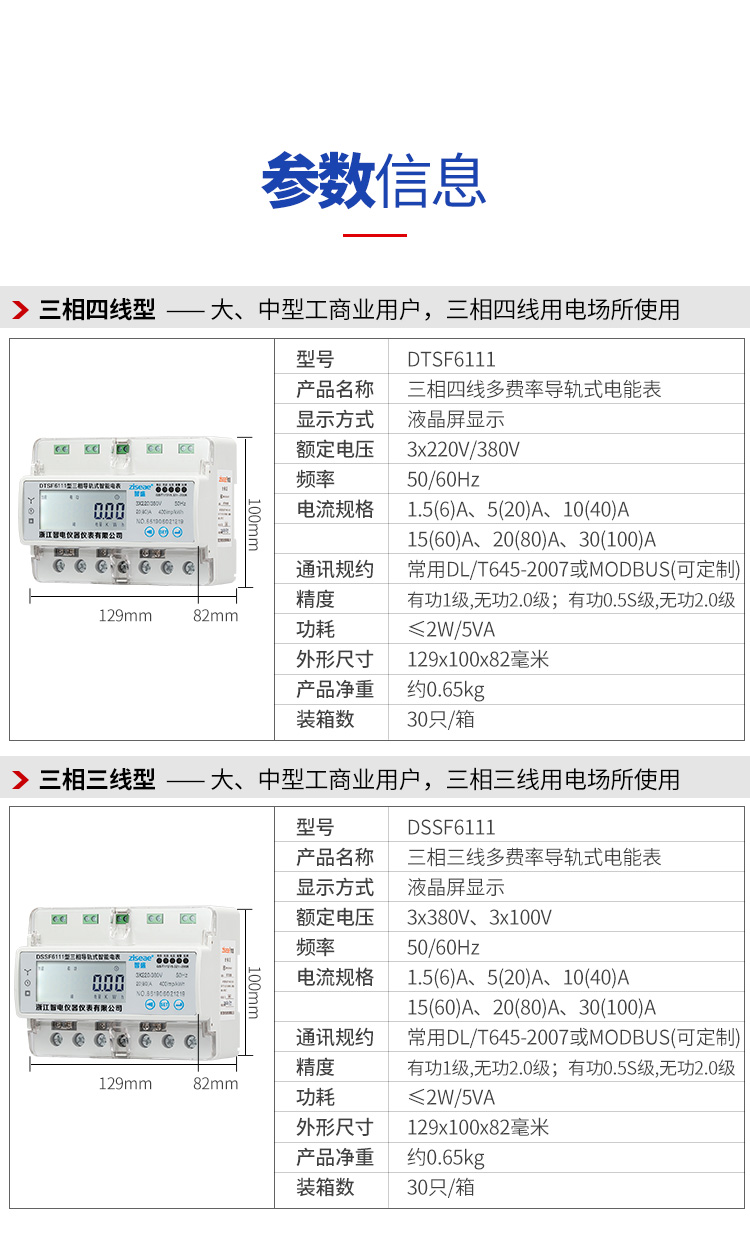 2、三相導軌式多費率電表品牌主要規格及技術參數